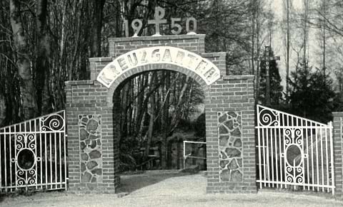 1949 entdeckte der damals in Schaag lebende Pastor Peter Schallenberg an der Karstraße einen gesprengten Westwallbunker und regte an, dort einen Kreuzweg zum Gedenken an die Gefallenen zu schaffen. Auf seine Initiative hin wurde an dieser Stelle zunächst ein sieben Meter hohes Holzkreuz errichtet, dessen Einweihung am Karfreitag 1949 erfolgte. In den folgenden Monaten legten die Schaager im umliegenden Waldstück Wege an und errichteten Kreuzwegstationen. Die offizielle Einweihung des Kreuzgartens fand am Pfingstsonntag 1950 statt.